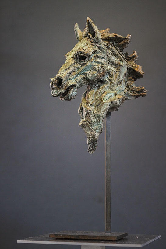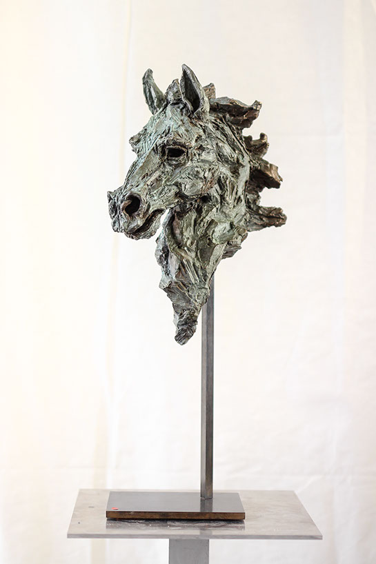 Cette sculpture en bronze s’inspire du cheval Rakhsh, issu des poèmes épiques du Shâh-Nâme, le livre des rois qui retrace l’histoire de l’empire perse et des grands rois d’Iran.