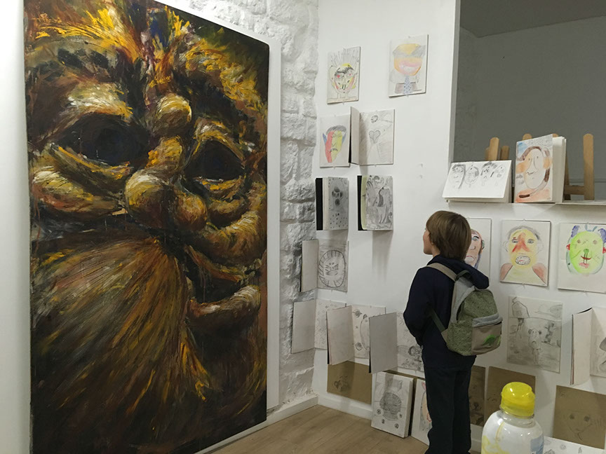 Exposition "Gueules - Horreur et innocence" avec les enfants et artistes en herbe d'Artyfamilly Art Contemporain instruction pour tous - 49 rue des Vinaigriers, 75010 Paris.